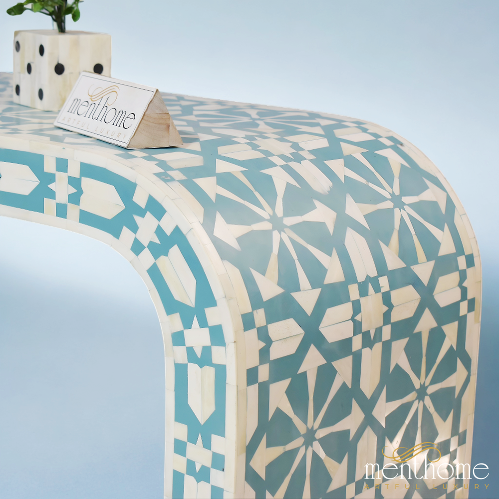 Turquoise Entryway Table Console Bone Inlay | Luxury Handmade Console