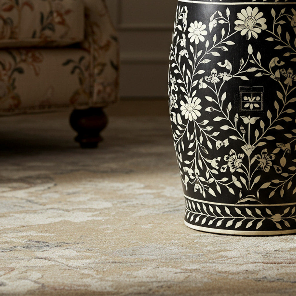 Black and White Floral Garden Stool | Luxury Handmade Stool