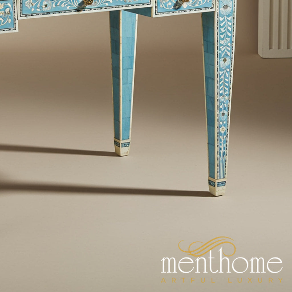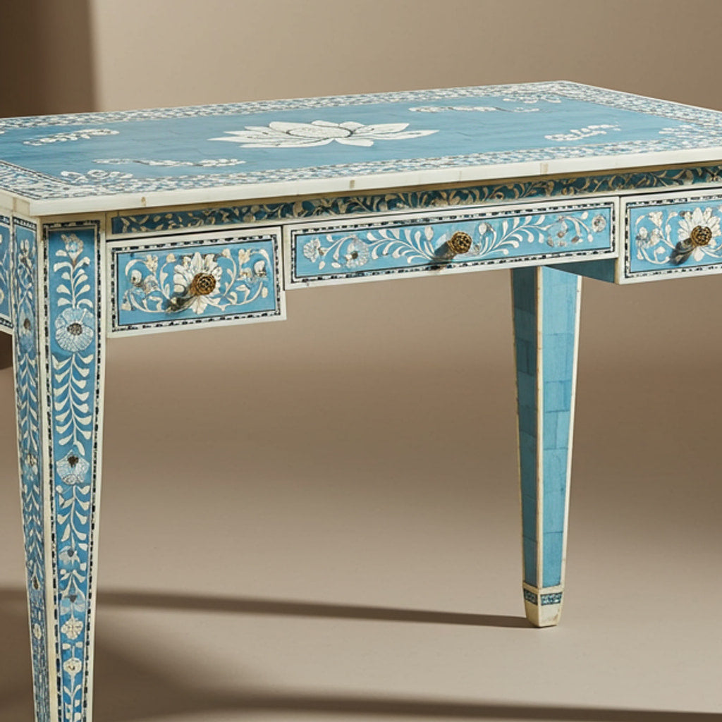 Handcrafted Blue Bone Inlay Writing Desk | Luxury Handmade Desk