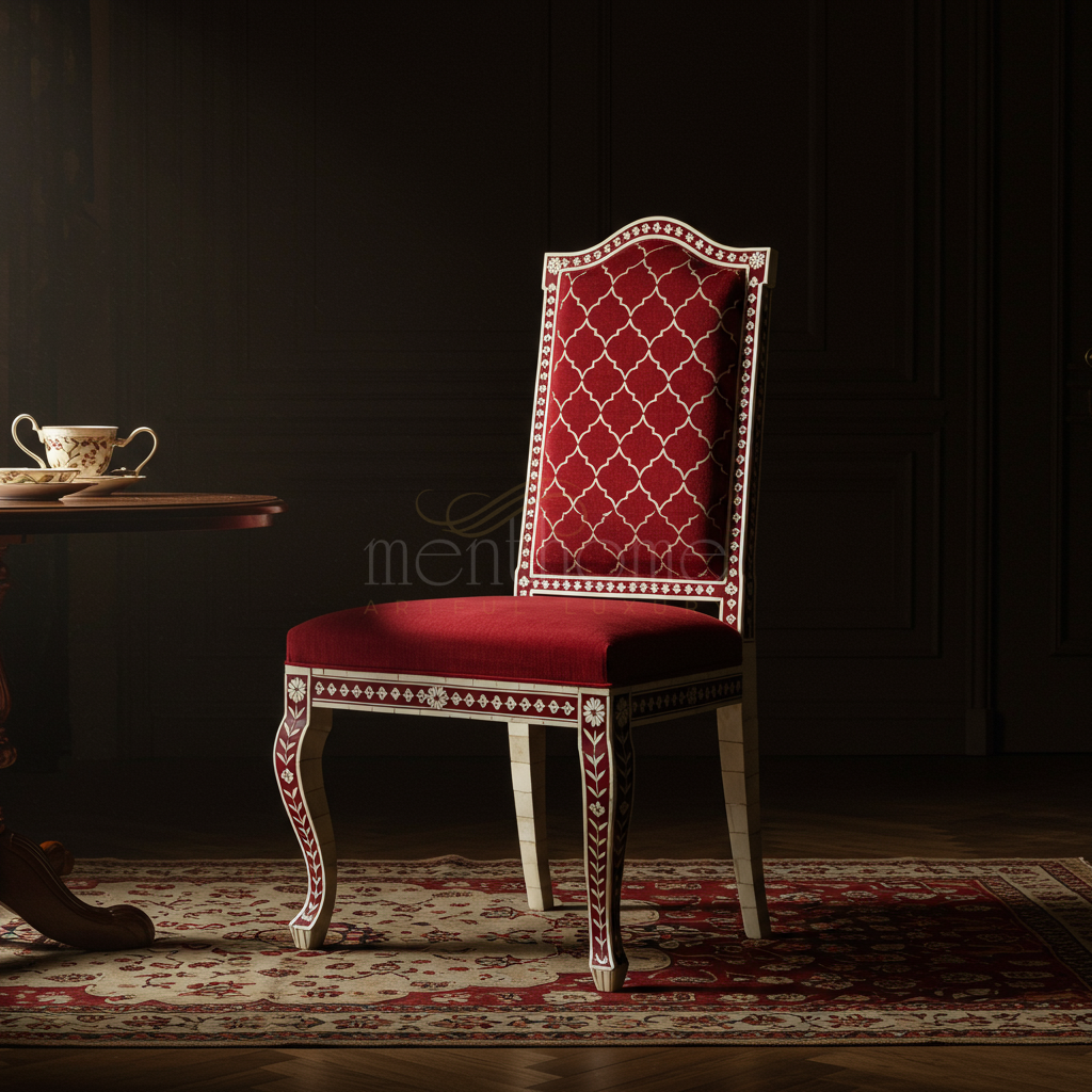 Inlay Chair with Rich Red Upholstery | Luxury Handmade Chair