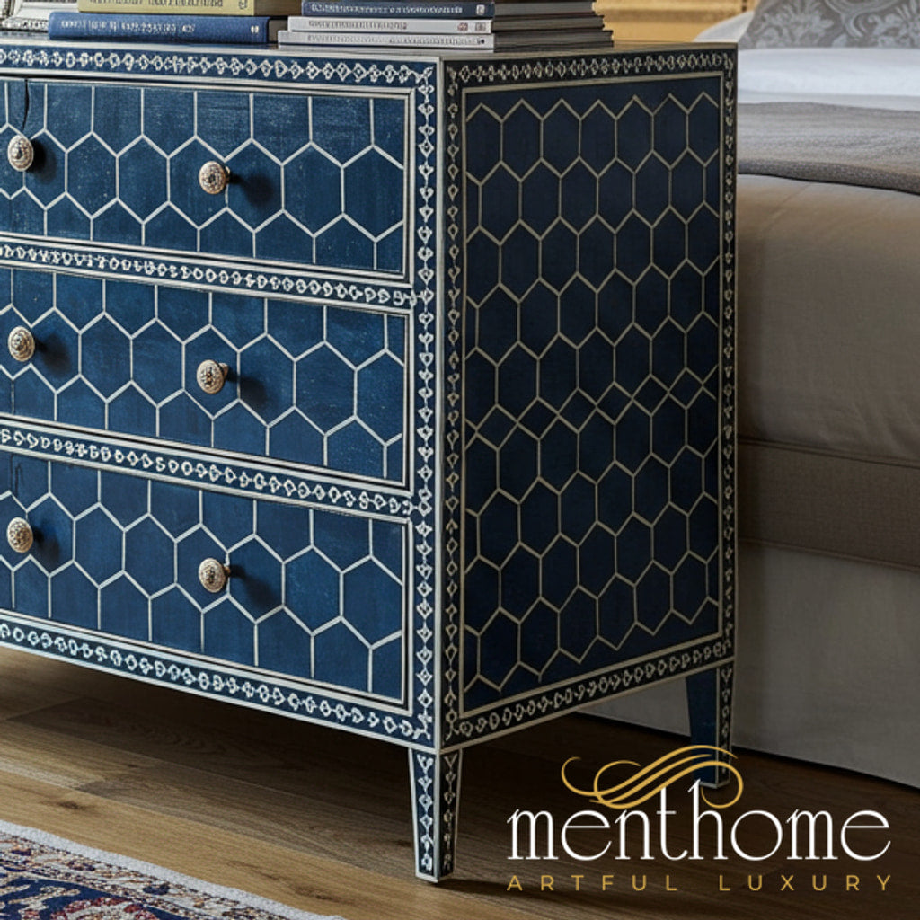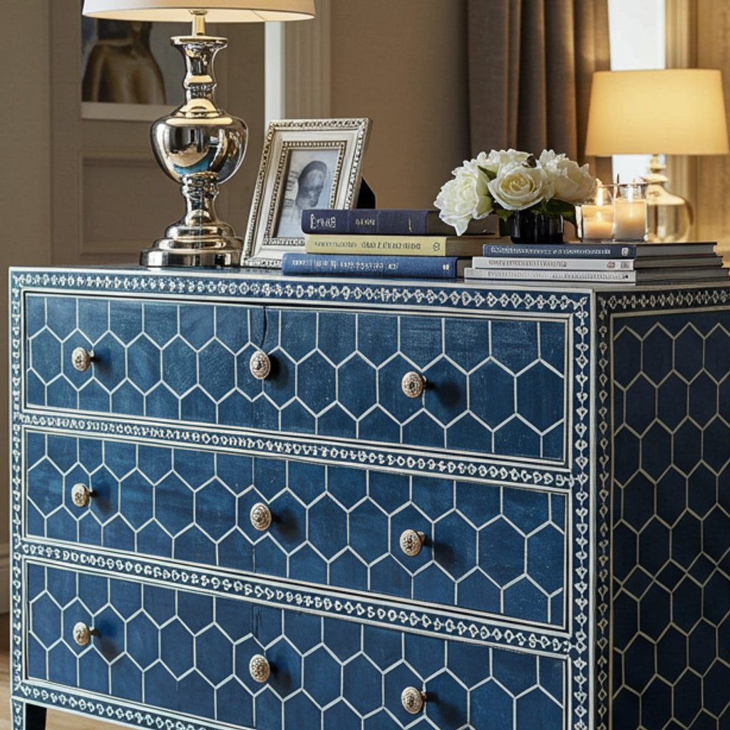 Blue Geometric Patterned 3-Drawer Dresser | Luxury Handmade Dresser