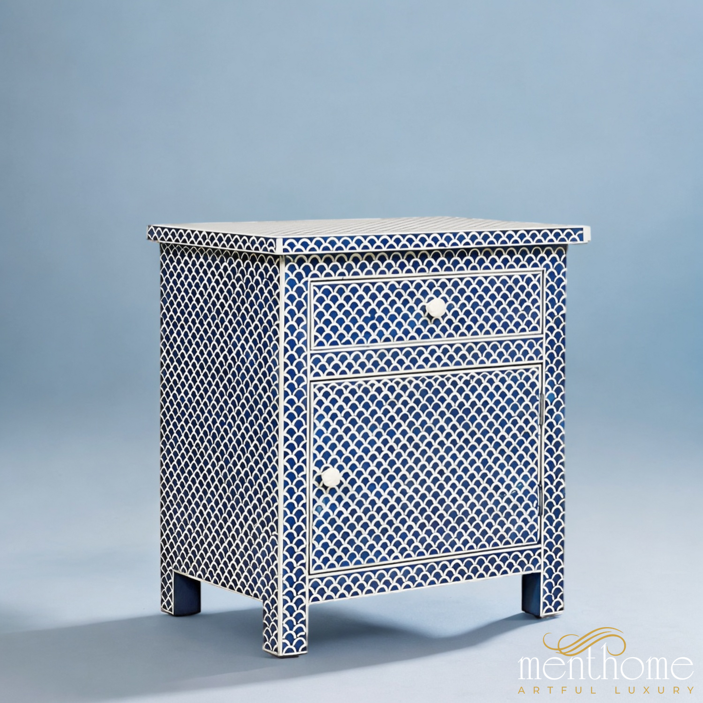 Bone Inlay One Door Bedside table | Luxury Handmade Bedside Table