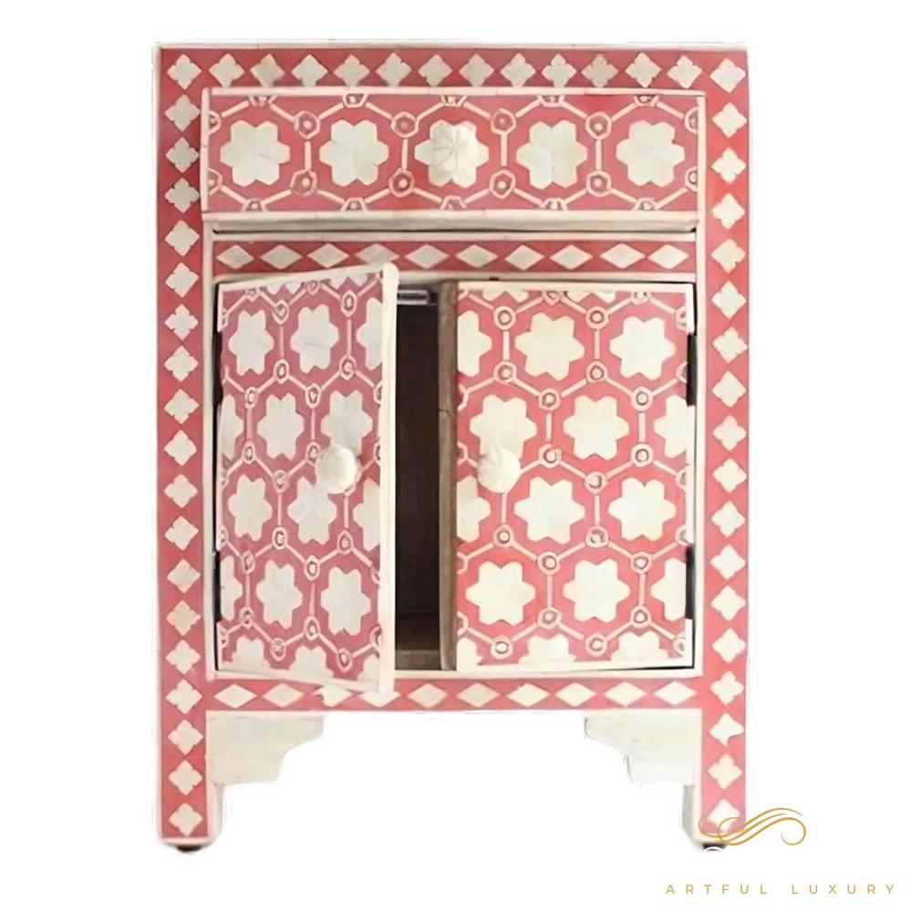 Bubblegum Pink Mother of Pearl Bedside Table | Luxury Handmade Bedside Table