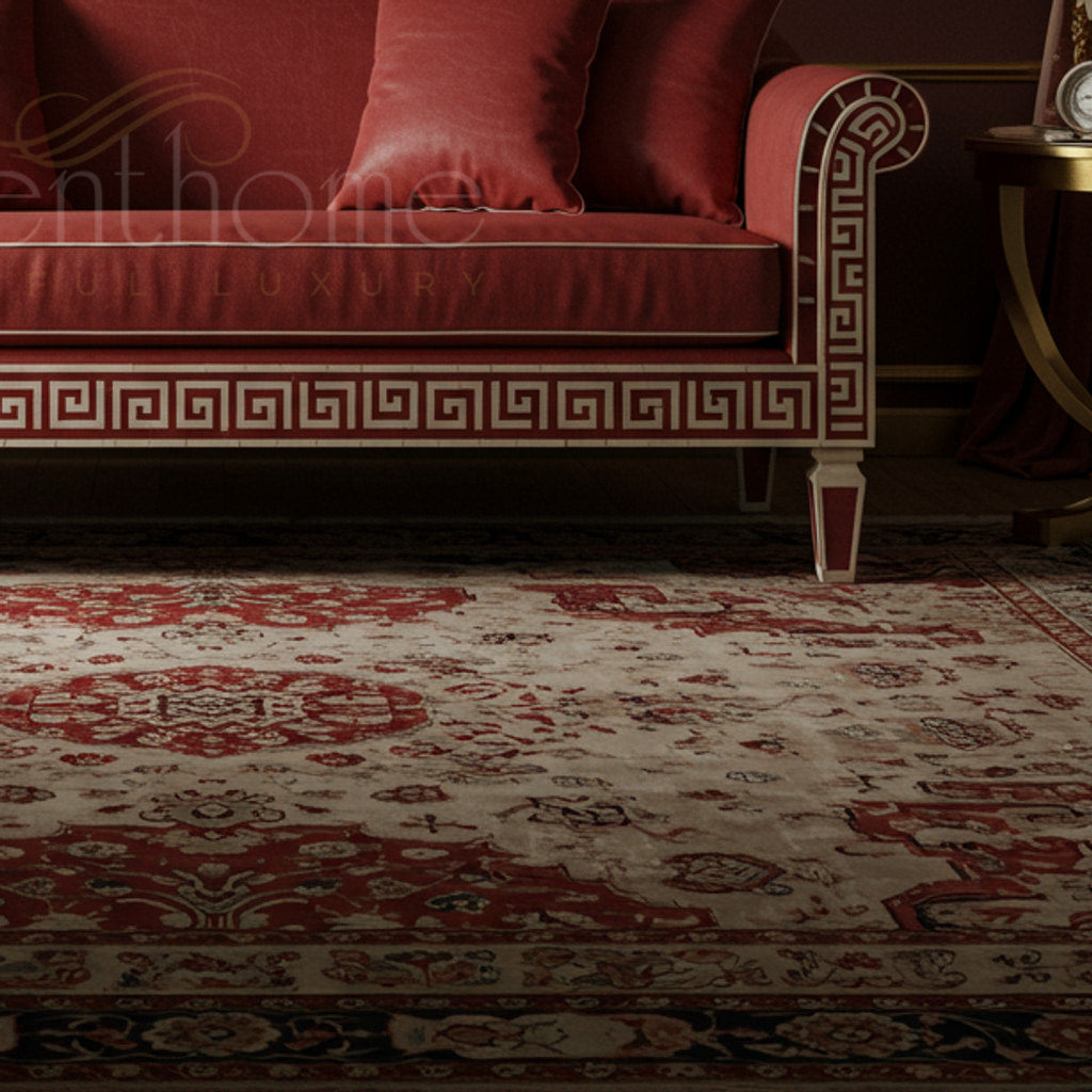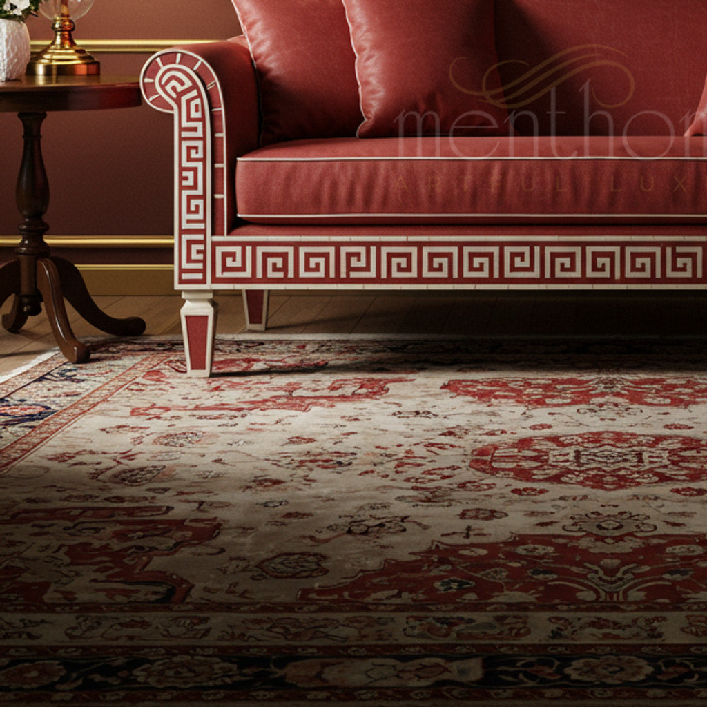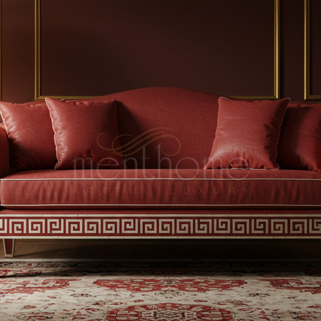 Elegance Inlay Red Velvet Sofa | Luxury Handmade Sofa