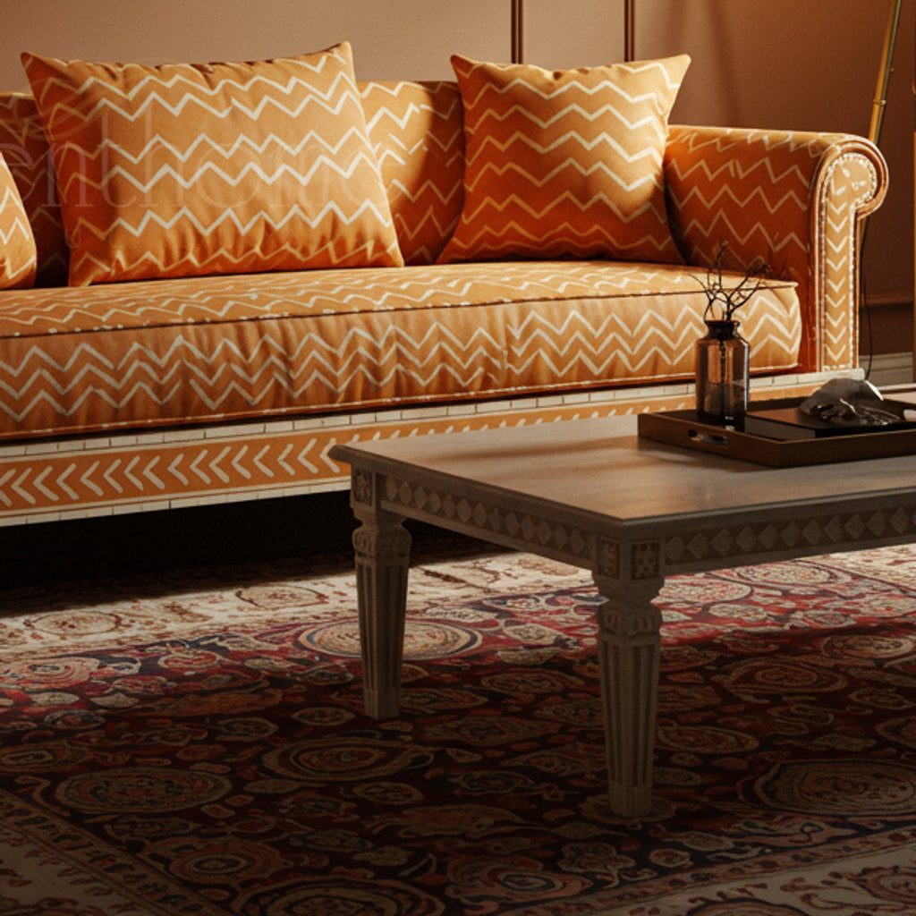 Elegant Inlay Pattern Orange Sofa | Luxury Handmade Sofa