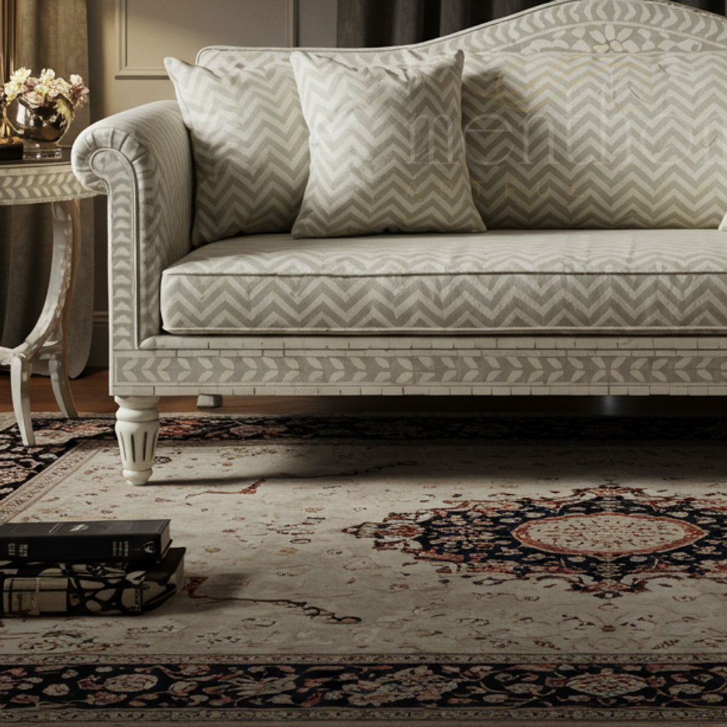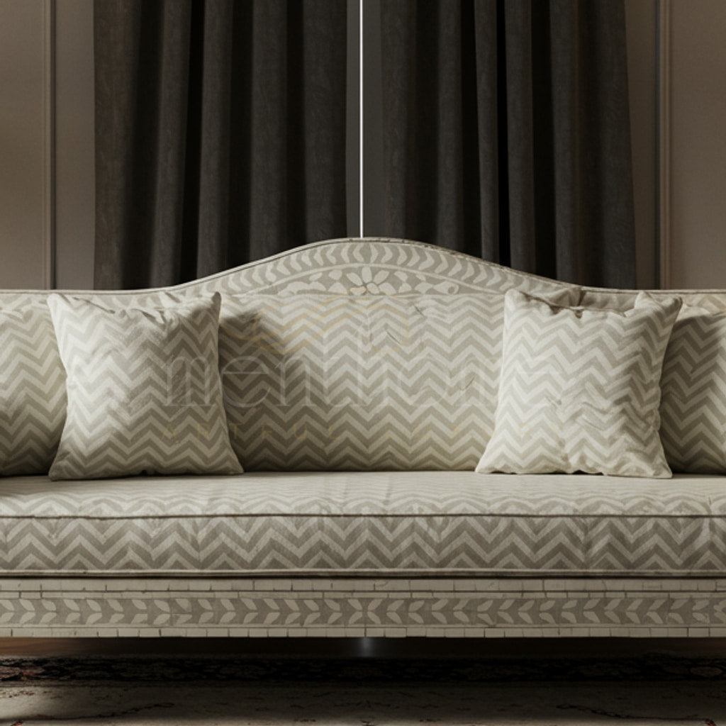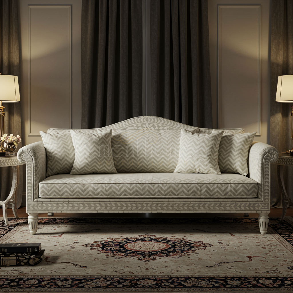 Elegant Inlay Pattern Upholstered Sofa | Luxury Handmade Sofa