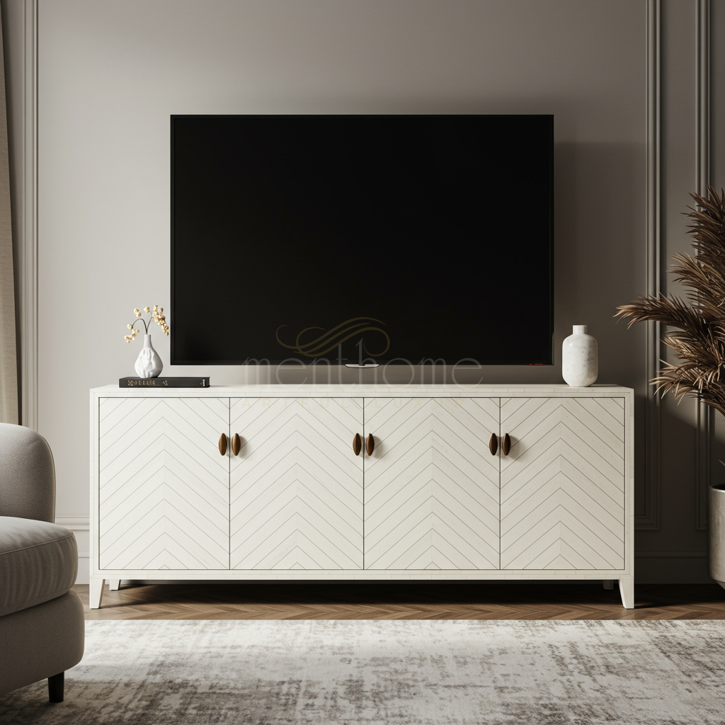 Elegant Inlay TV Cabinet with Chevron Pattern | Luxury Handmade TV Cabinet