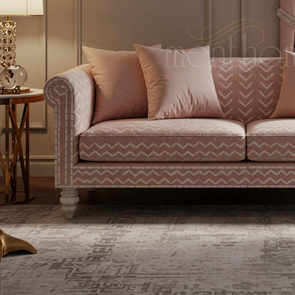 Elegant Pink Inlay Patterned Sofa | Luxury Handmade Sofa