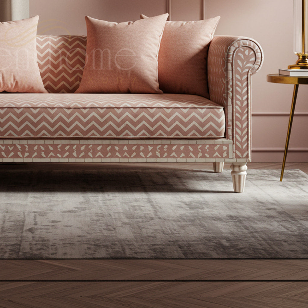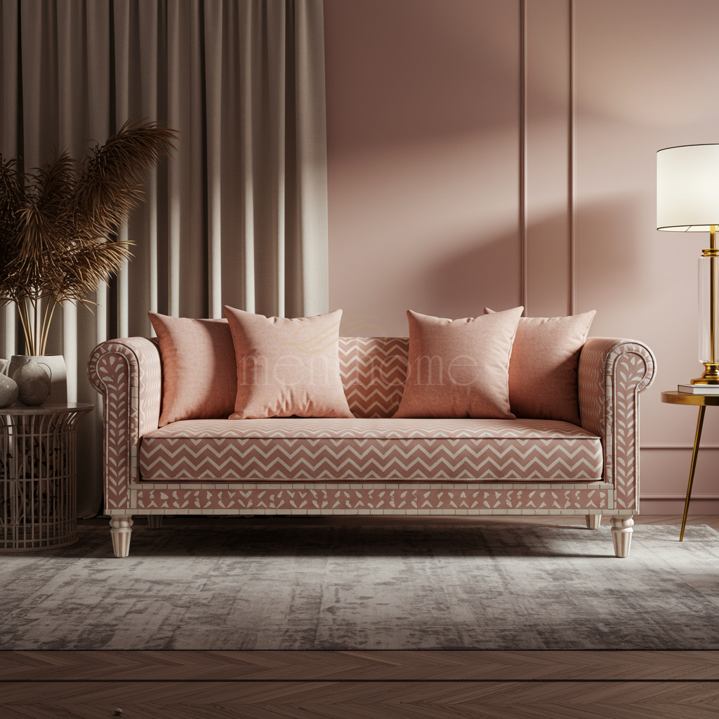 Elegant Pink Inlay Sofa with Patterned Upholstery | Luxury Handmade Sofa