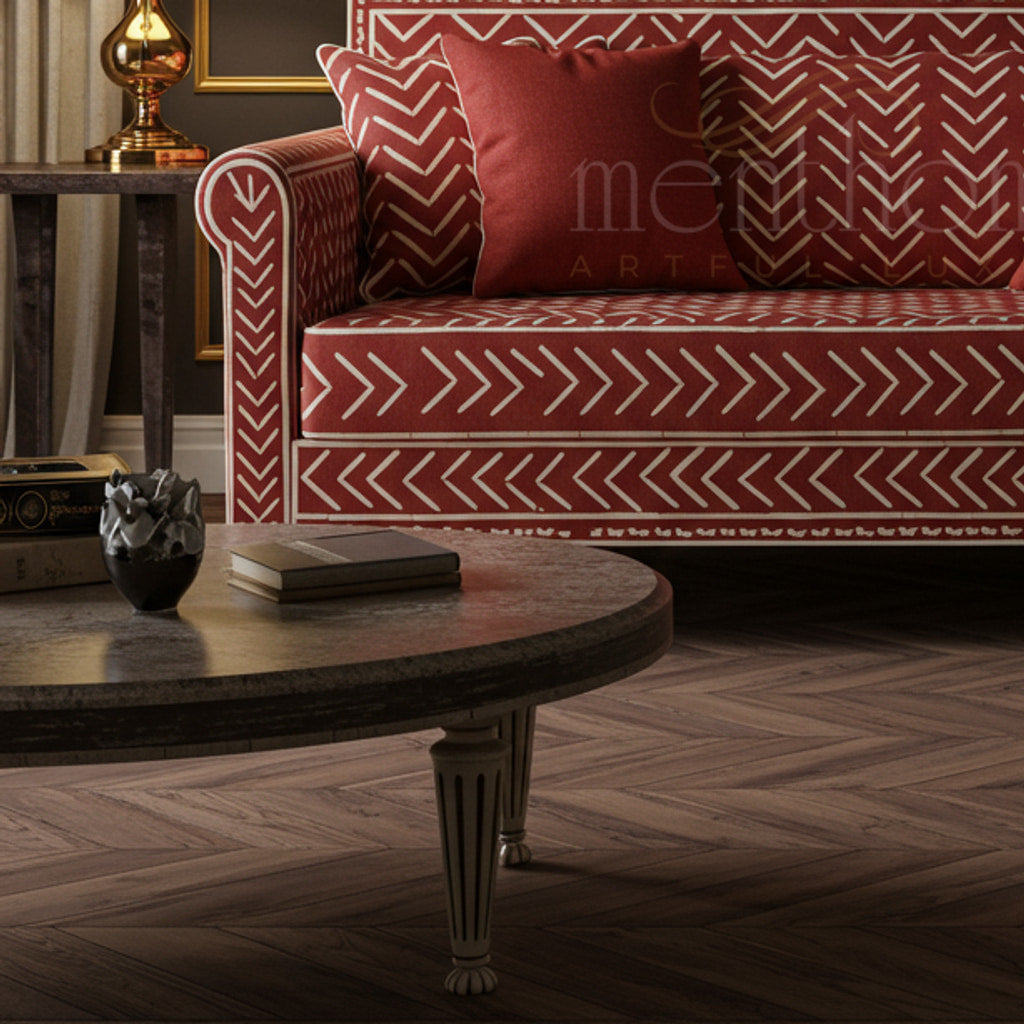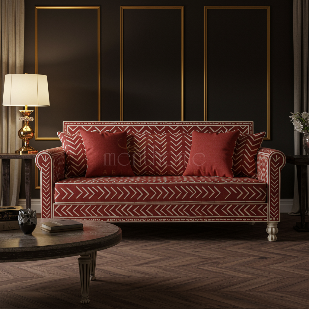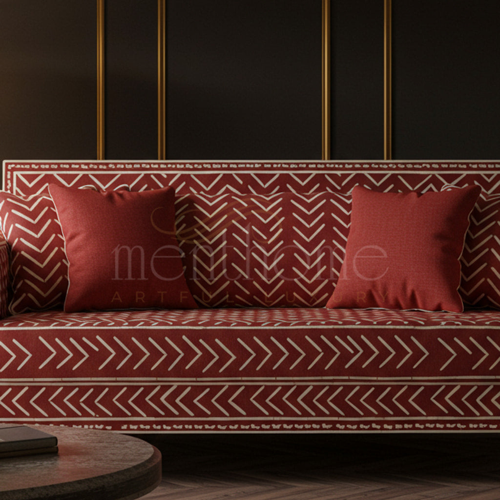 Elegant Red Inlay Pattern Sofa | Luxury Handmade Sofa