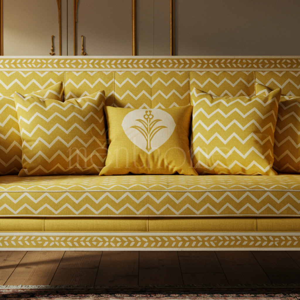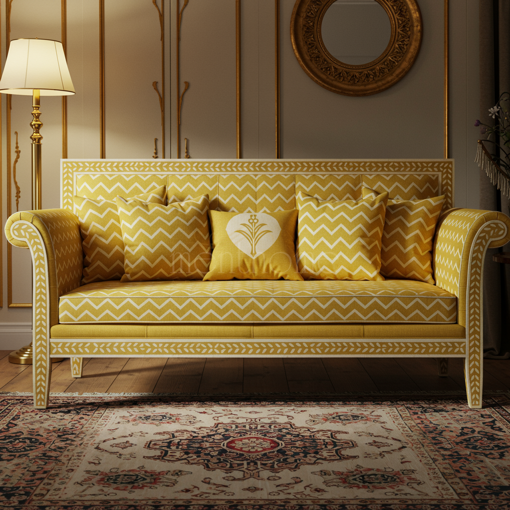 Elegant Yellow Inlay Sofa with Chevron Pattern | Luxury Handmade Sofa