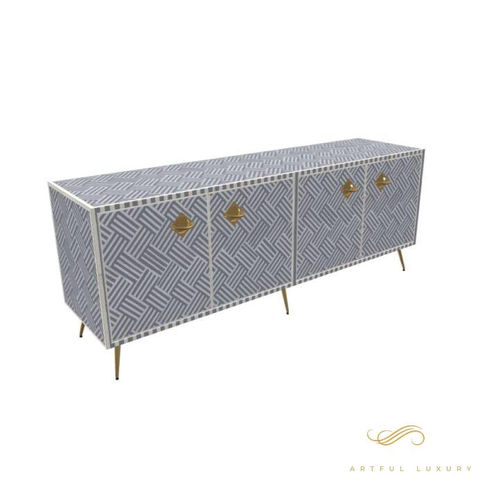 Geometric-Bone Inlay -Rectangular- Tv Cabinet | Luxury Handmade TV Cabinet