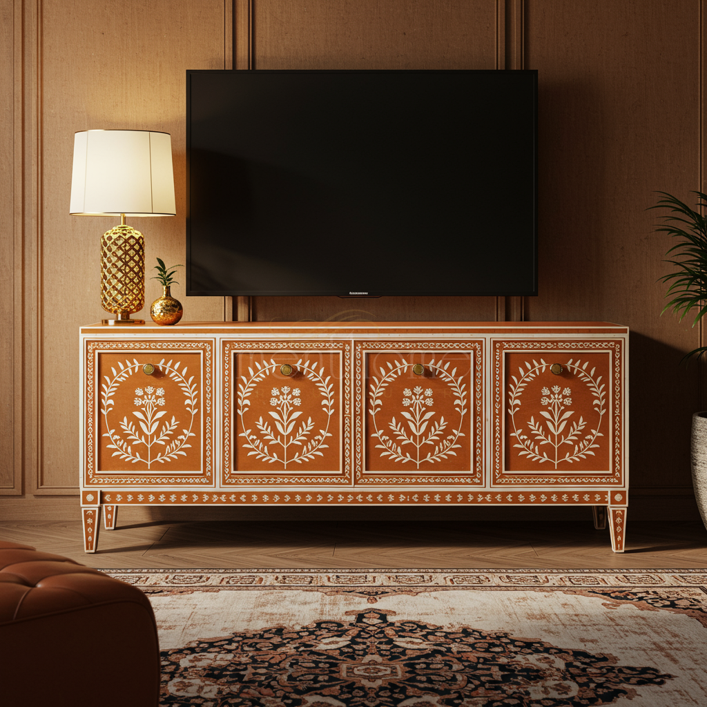 Handcrafted Inlay Floral TV Cabinet | Luxury Handmade TV Cabinet