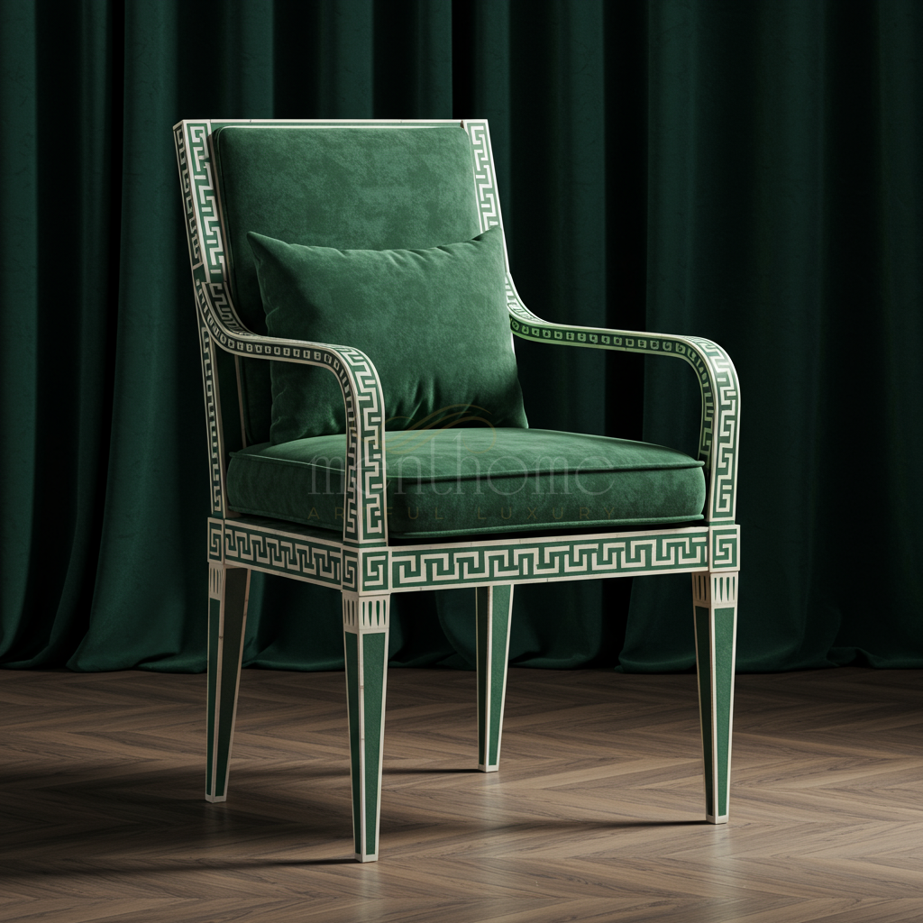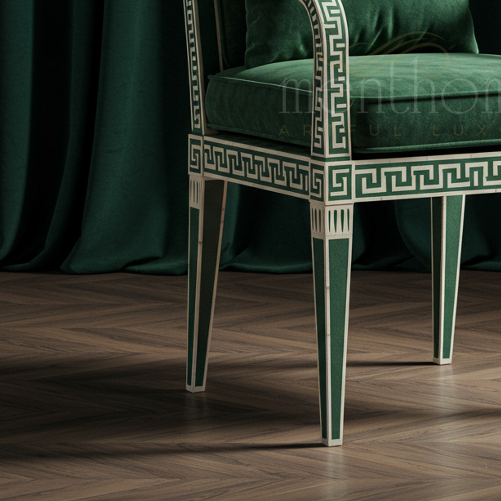 Inlay Chair - Elegant Green Velvet with Intricate Pattern | Luxury Handmade Chair
