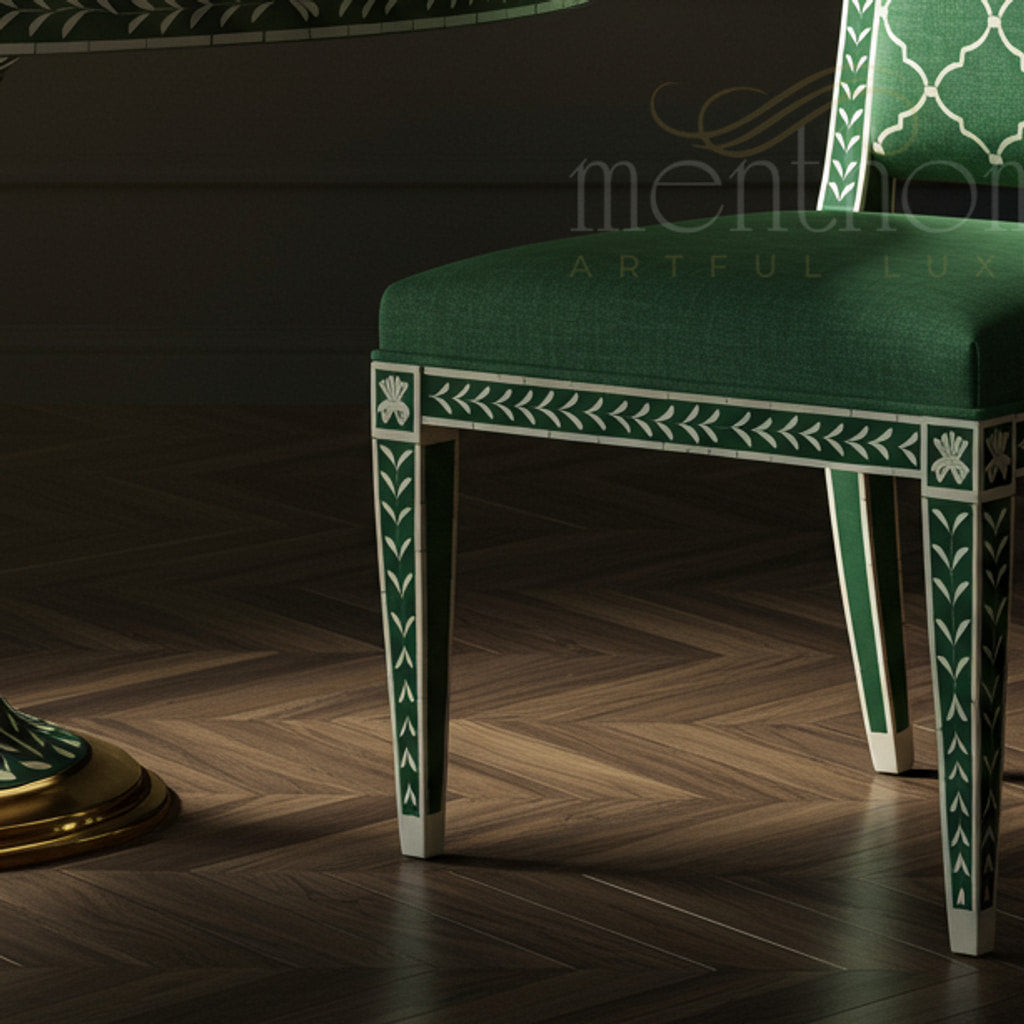 Inlay Chair in Elegant Green with Ivory Detailing | Luxury Handmade Chair