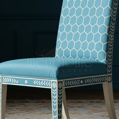 Inlay Chair with Blue Geometric Upholstery | Luxury Handmade Chair