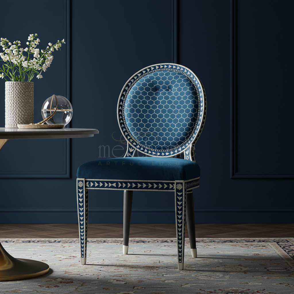 Inlay Chair with Blue Velvet Upholstery | Luxury Handmade Chair