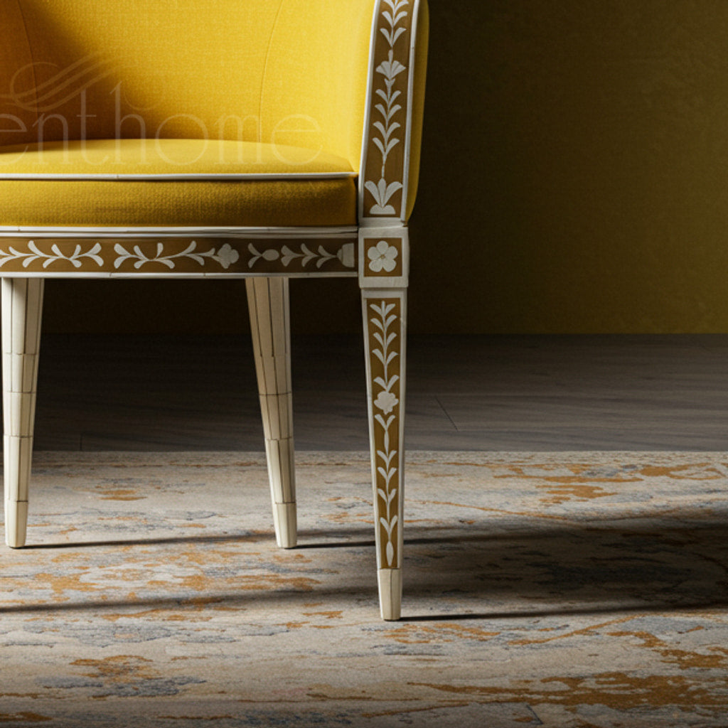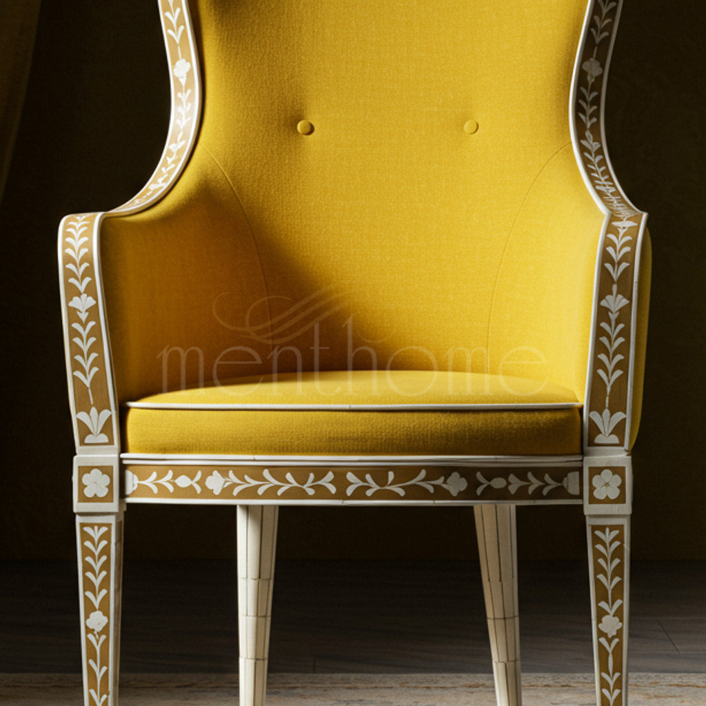Inlay Chair with Mustard Upholstery | Luxury Handmade Chair