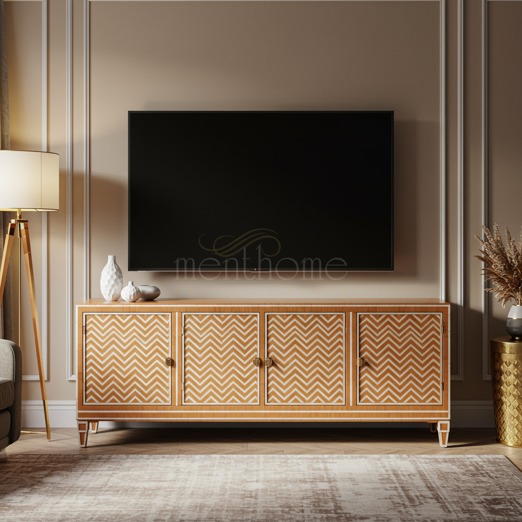 Inlay Chevron Pattern TV Cabinet | Luxury Handmade TV Cabinet