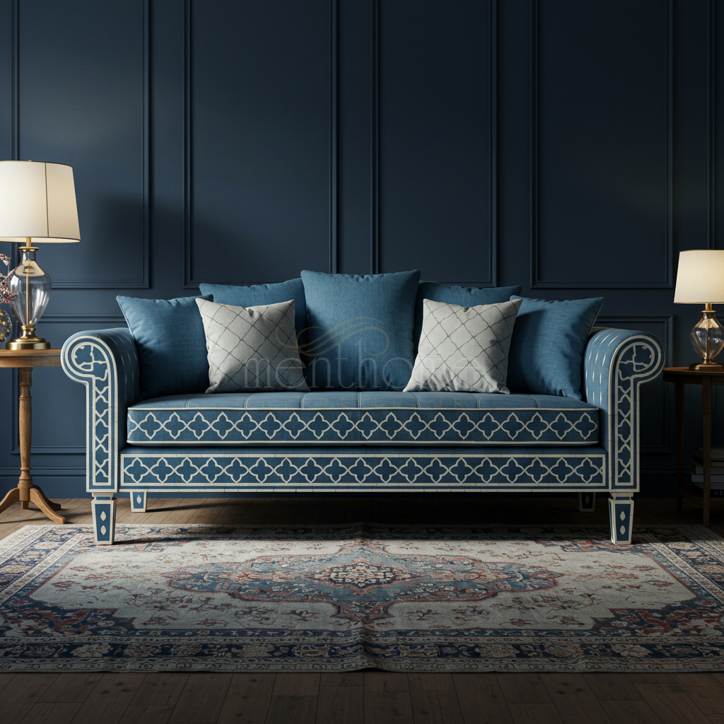 Luxury Blue Inlay Sofa with Classic Pattern | Luxury Handmade Sofa
