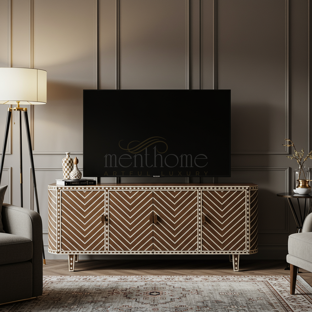 Luxury Inlay Wood Chevron TV Cabinet | Luxury Handmade TV Cabinet