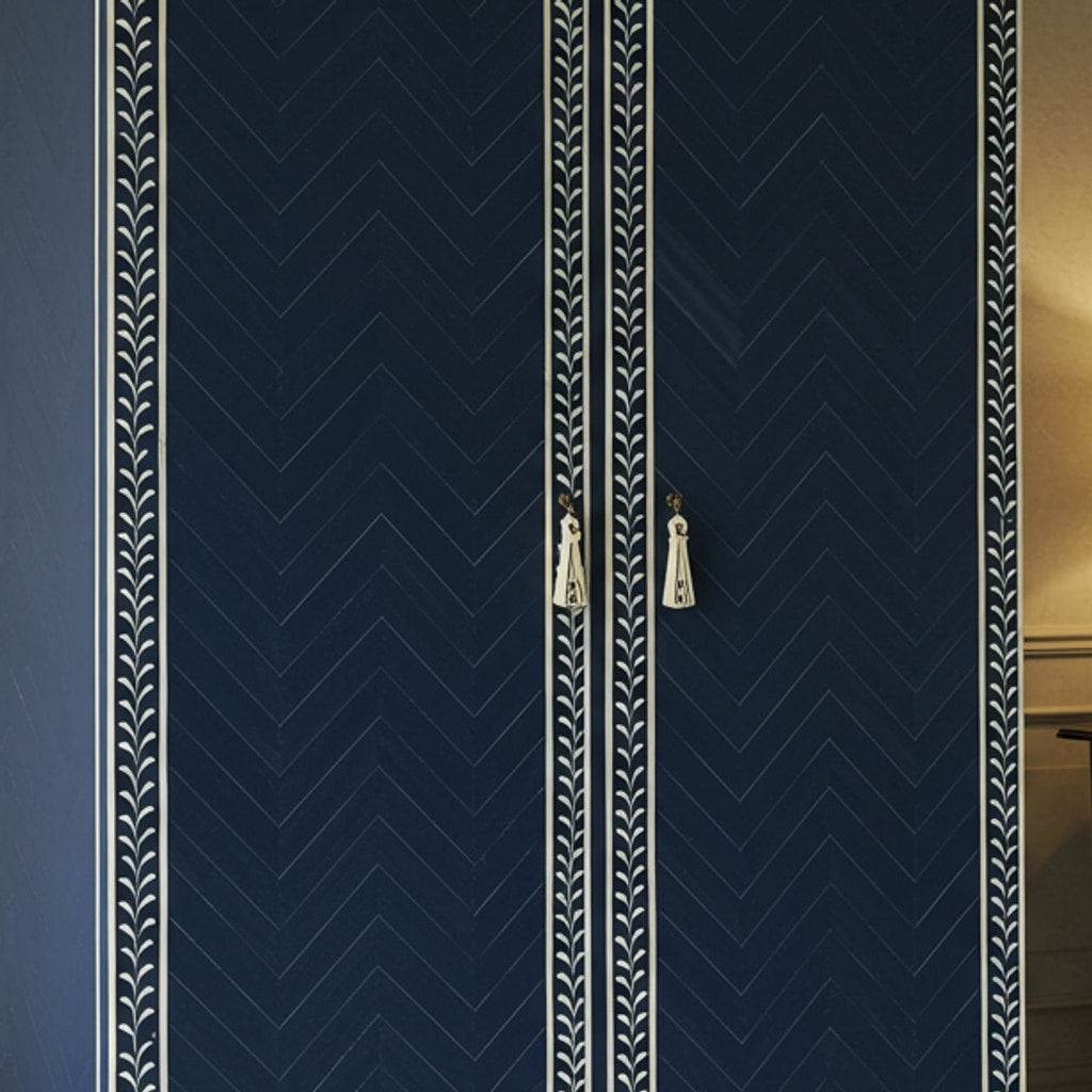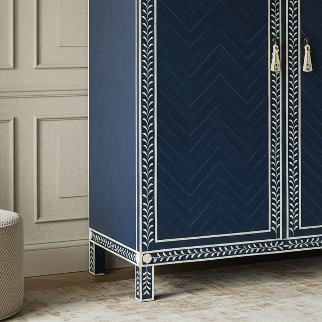 Navy Blue Hand-Painted Bone Inlay Wardrobe | Luxury Handmade Wardrobe