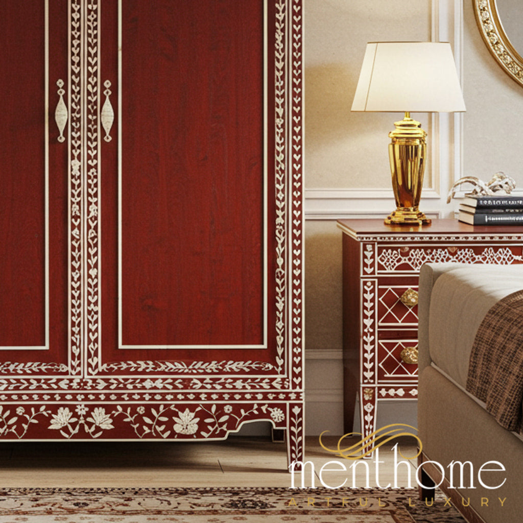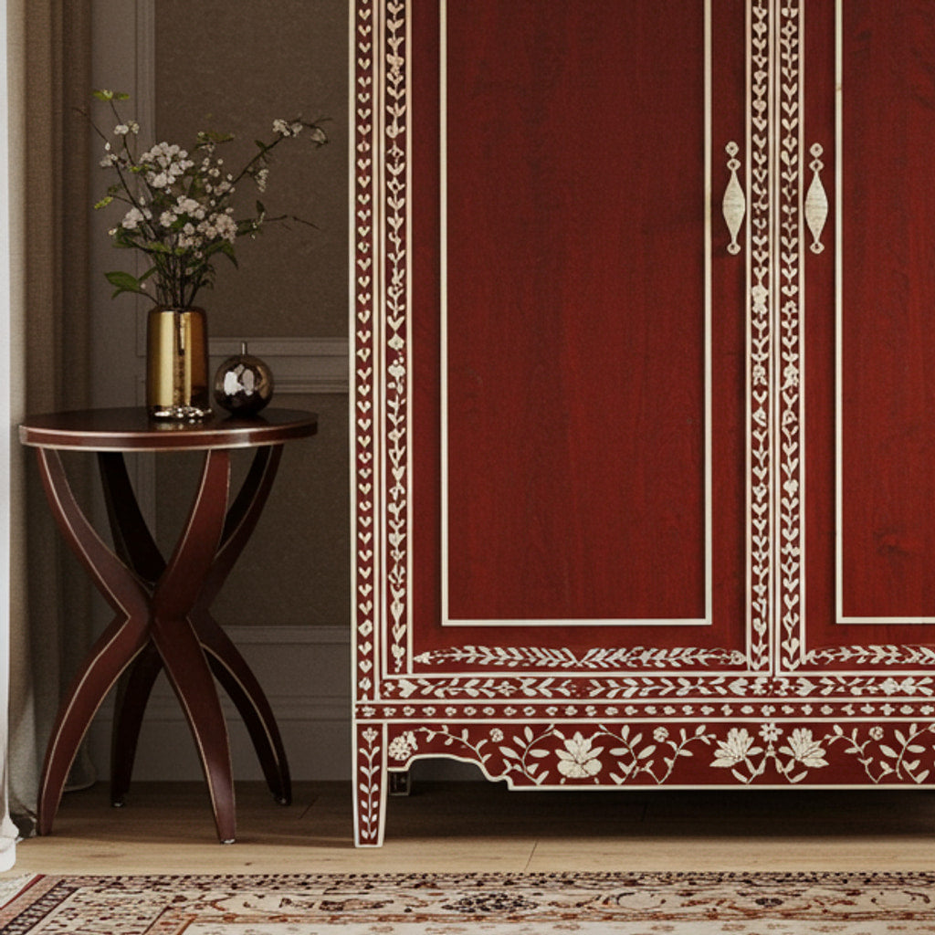 Rosewood Wardrobe with Intricate Ivory Inlay | Luxury Handmade Wardrobe