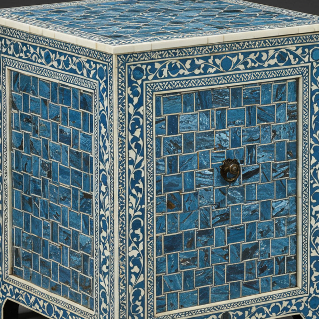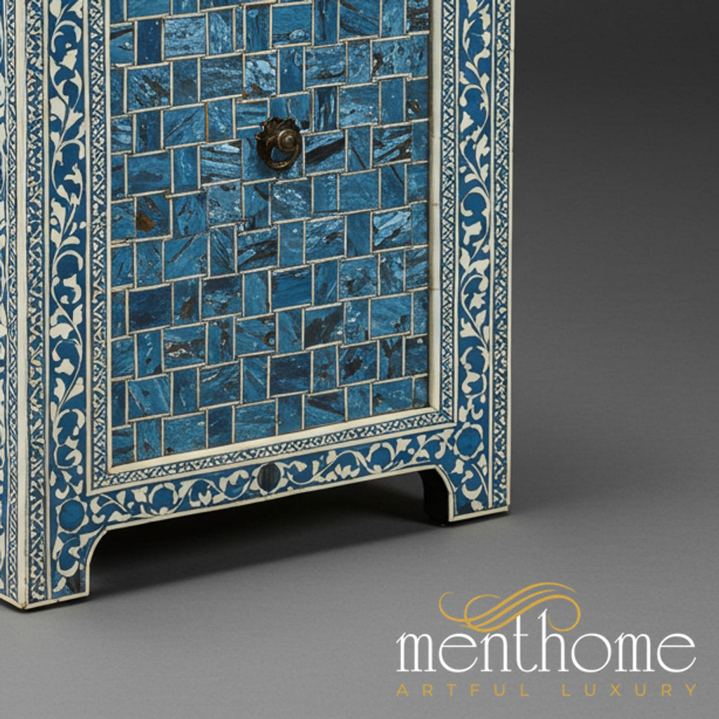 古董蓝色镶嵌柜 | 豪华手工边桌