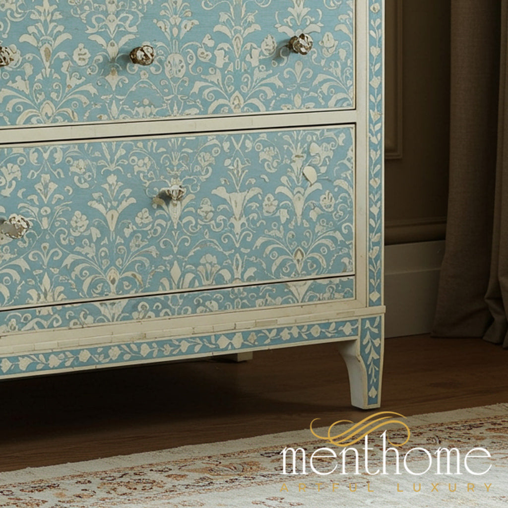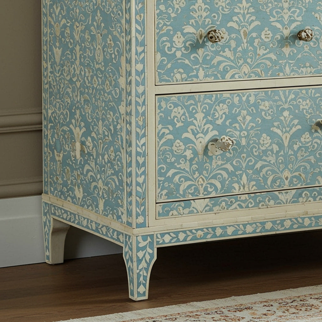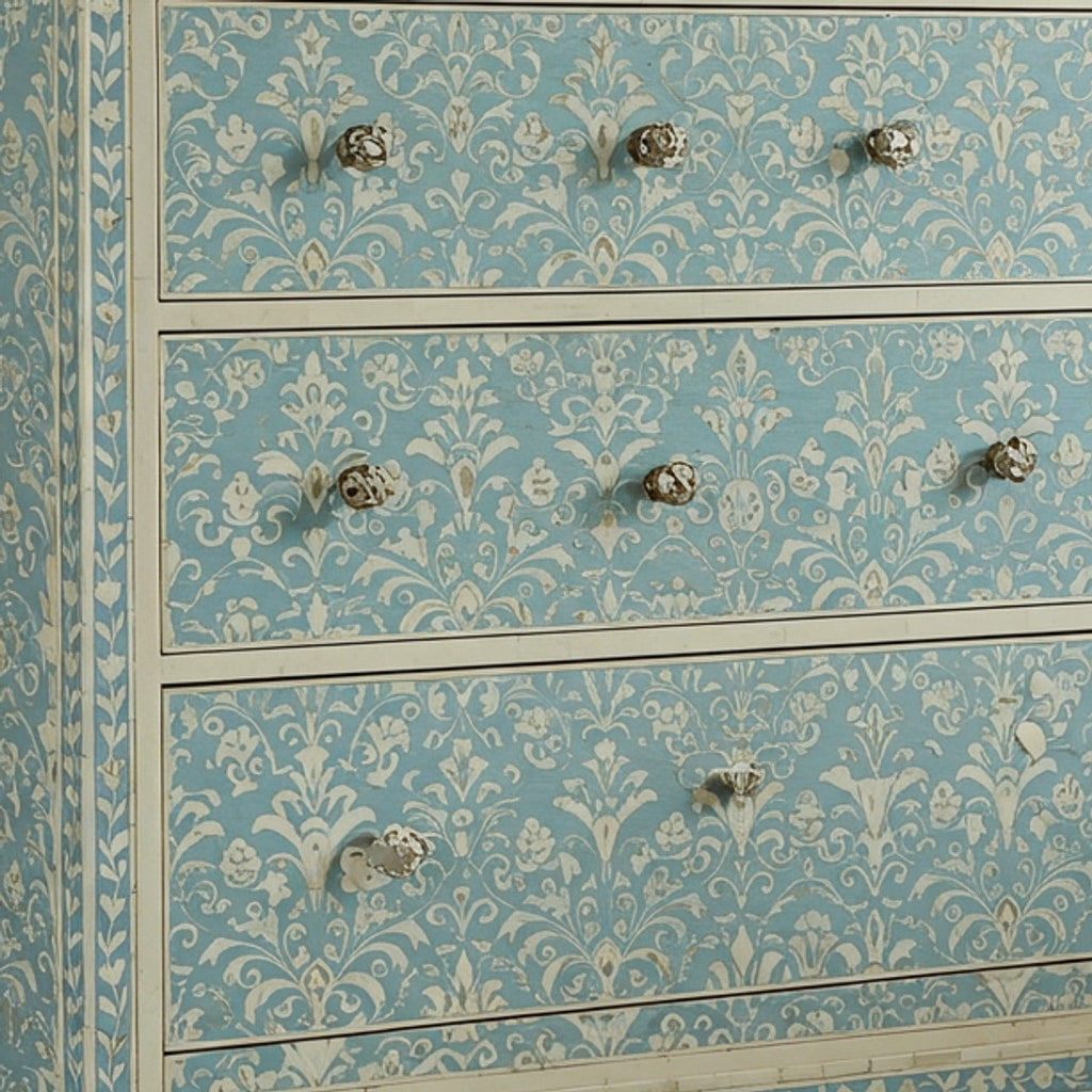手绘花卉蓝色和奶油色抽屉柜 | 奢华手工抽屉柜