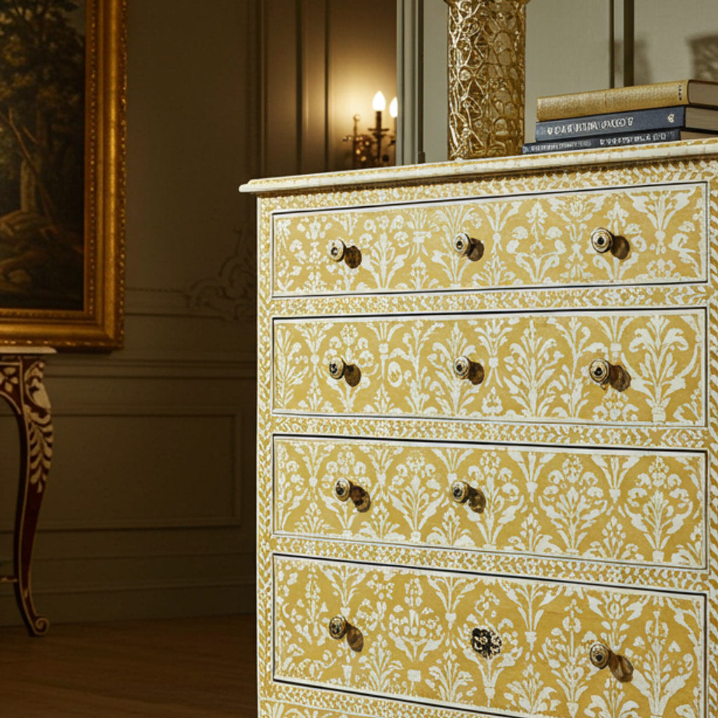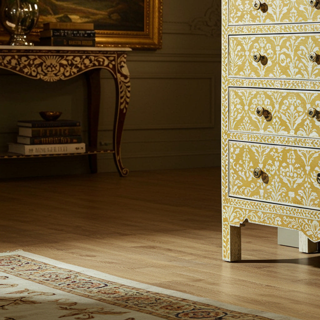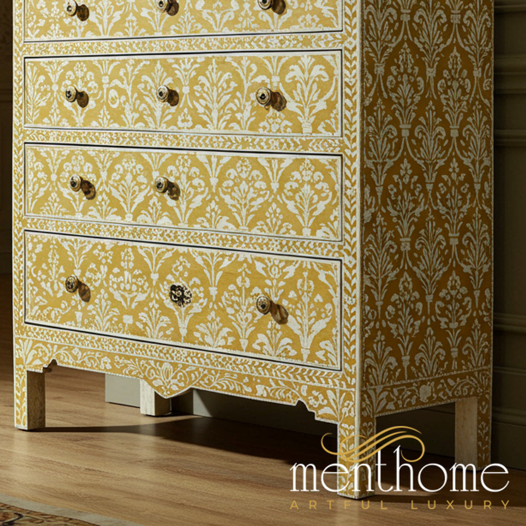 手绘花卉图案木质抽屉柜 | 奢华手工抽屉柜