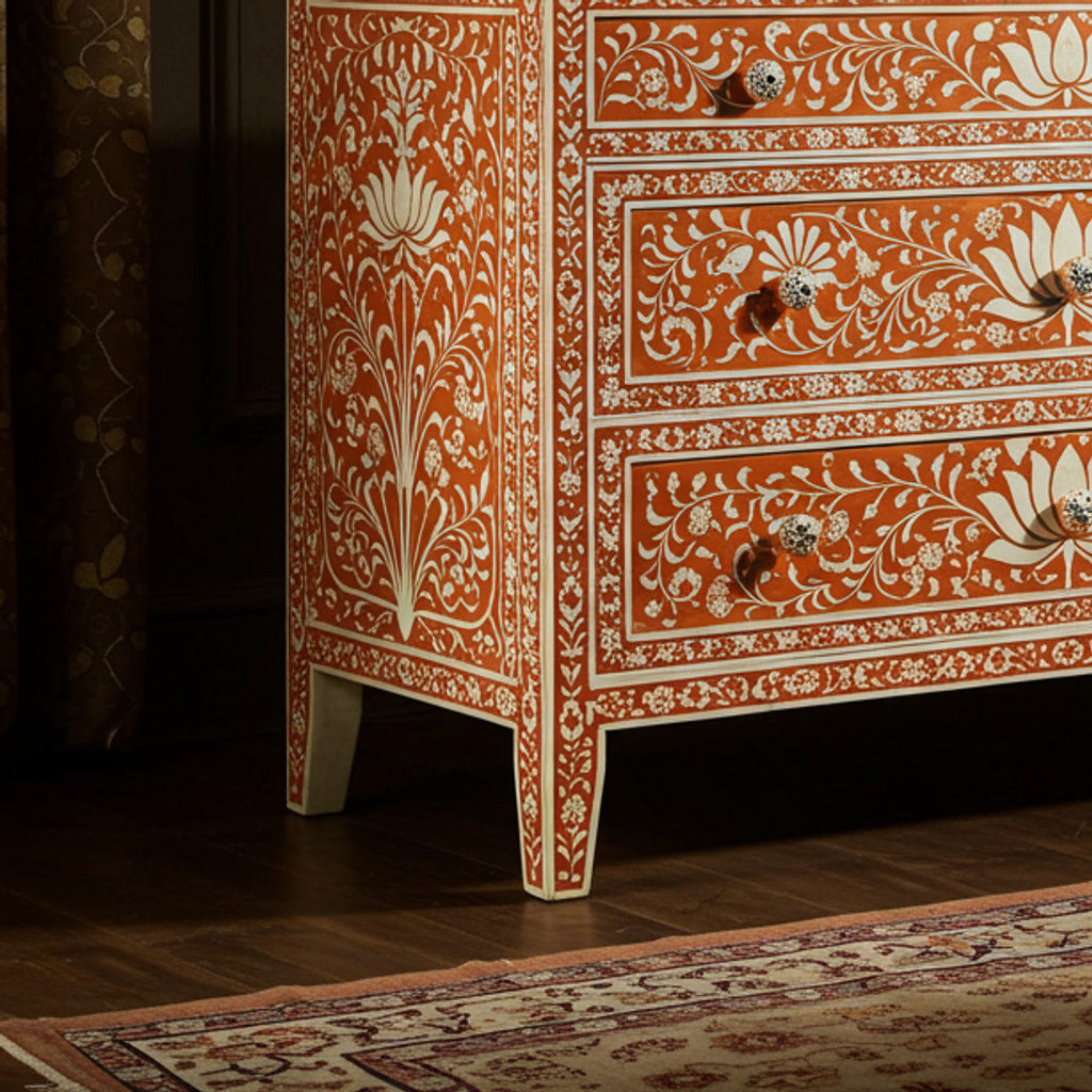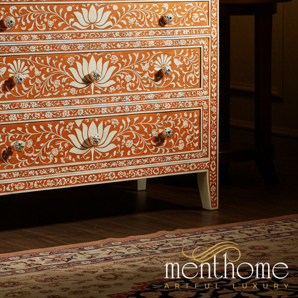手绘花卉图案木质抽屉柜 | 奢华手工抽屉柜