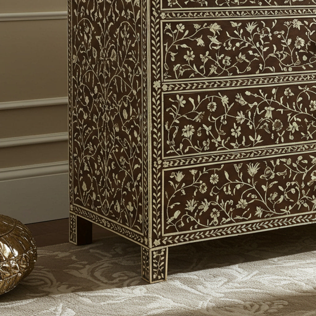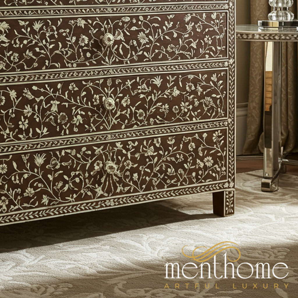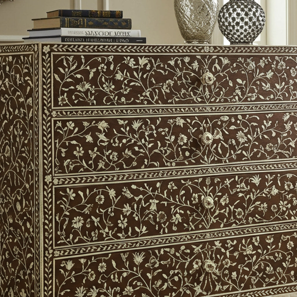 手工镶嵌花卉图案木制抽屉柜 | 奢华手工抽屉柜