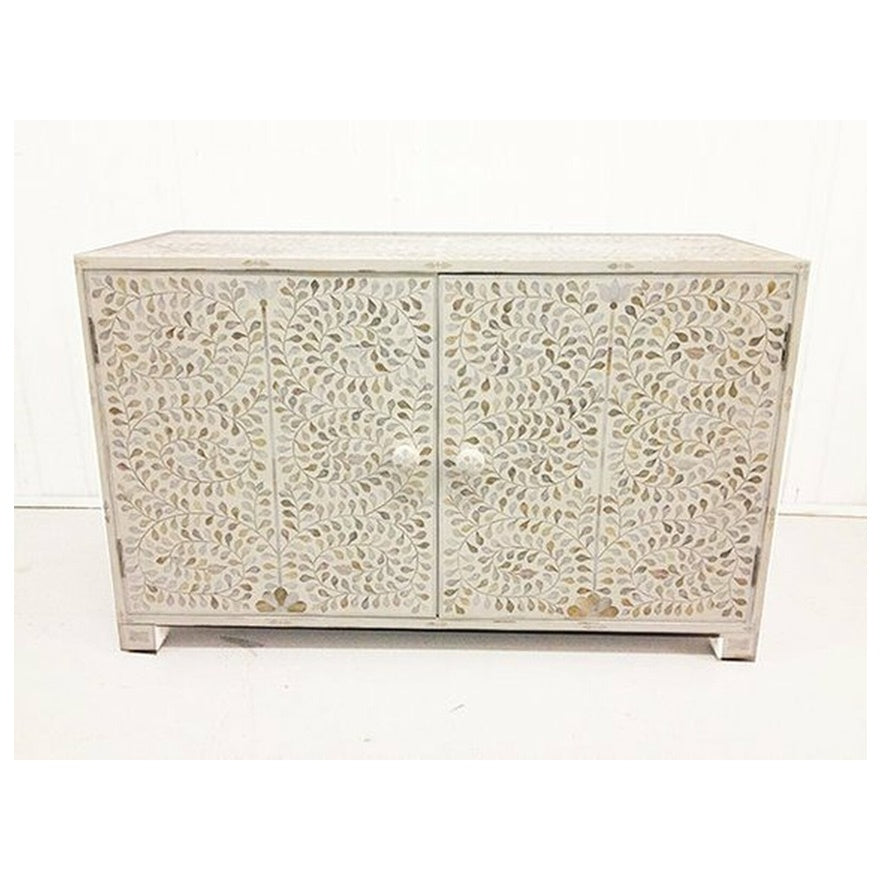 - 我们美丽的灰色/黑色花卉珍珠母镶嵌高脚柜将成为卧室中的点睛之笔。 \n