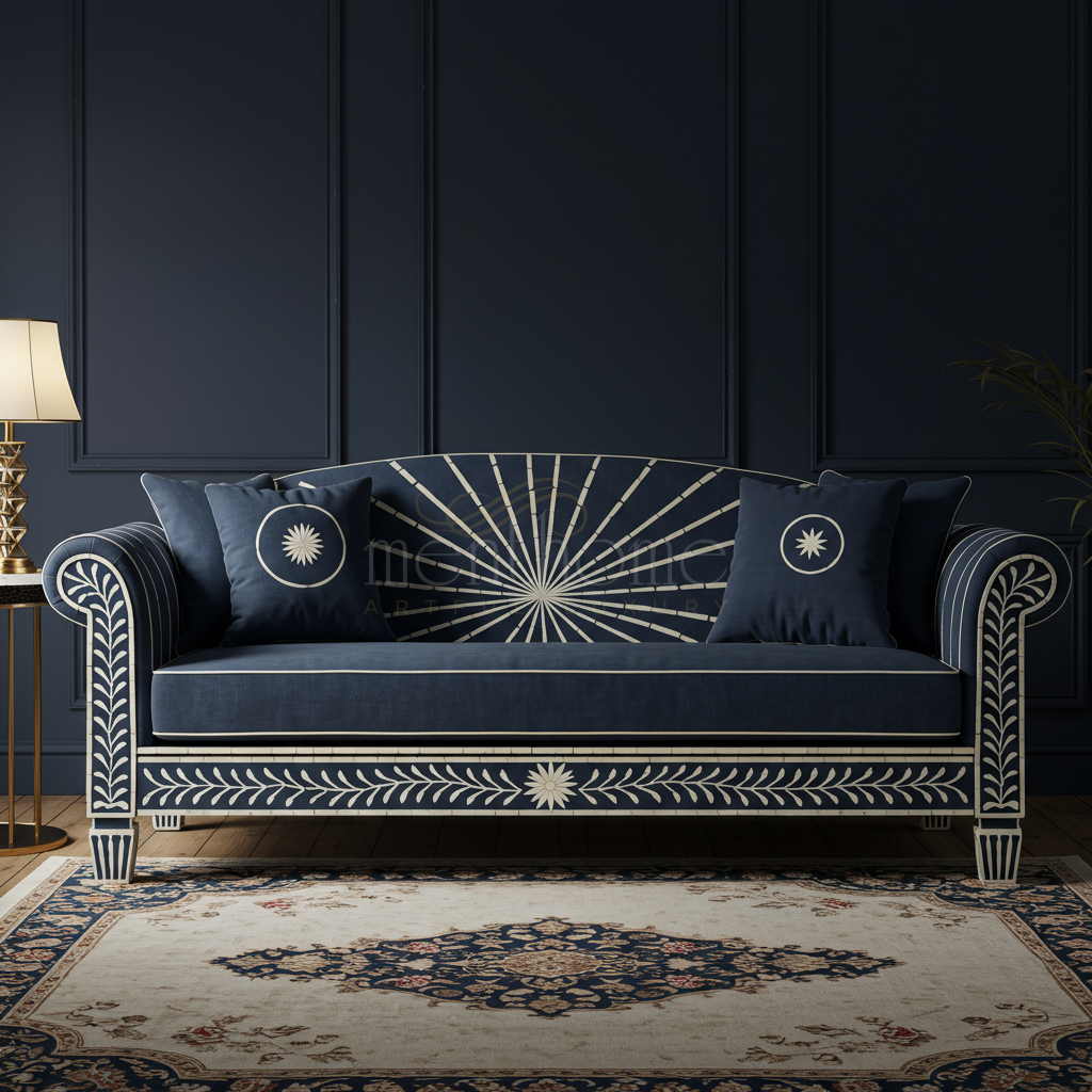 Regal Navy Blue Inlay Sofa | Luxury Handmade Sofa